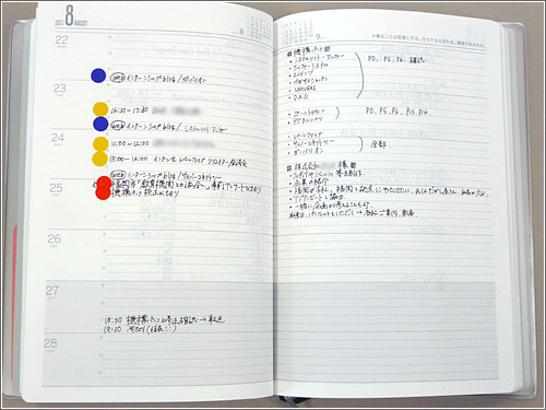 実際にスケジュールを書きこんでいる