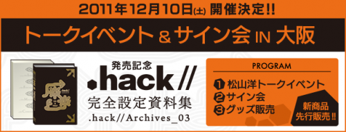12/10(土)“「.hack//」完全設定資料集 .hack//Archives_03 発売記念トークイベント&サイン会 IN 大阪”開催のお知らせ