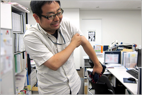 デザイン室チーフ三好にたくさんの原稿が押し寄せる!
