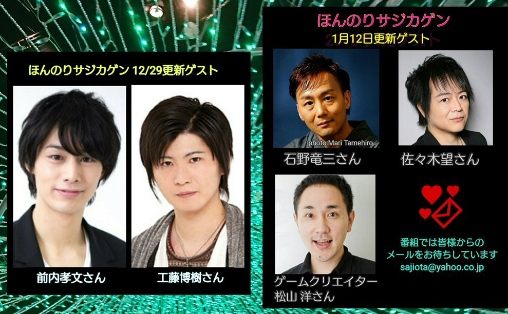 12/29(金)、1/12(金)Voice Love Network「せたジュンのほんのりサジカゲン」にサイバーコネクトツー松山洋ゲスト出演決定!