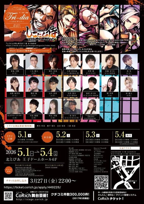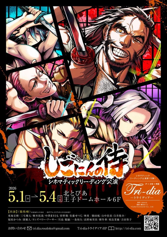リーディングユニット“トライディア”によるシネマティックリーディング公演が、2026年5月1日(金)~4日(祝月)に開催!本公演は、映画のスクリーンのような大画面で漫画を投影し、モーションコミックのような迫力と、音楽、効果音、映像、声優のお芝居全てが臨場感あふれるリアルタイム進行!!