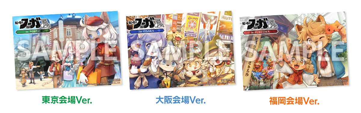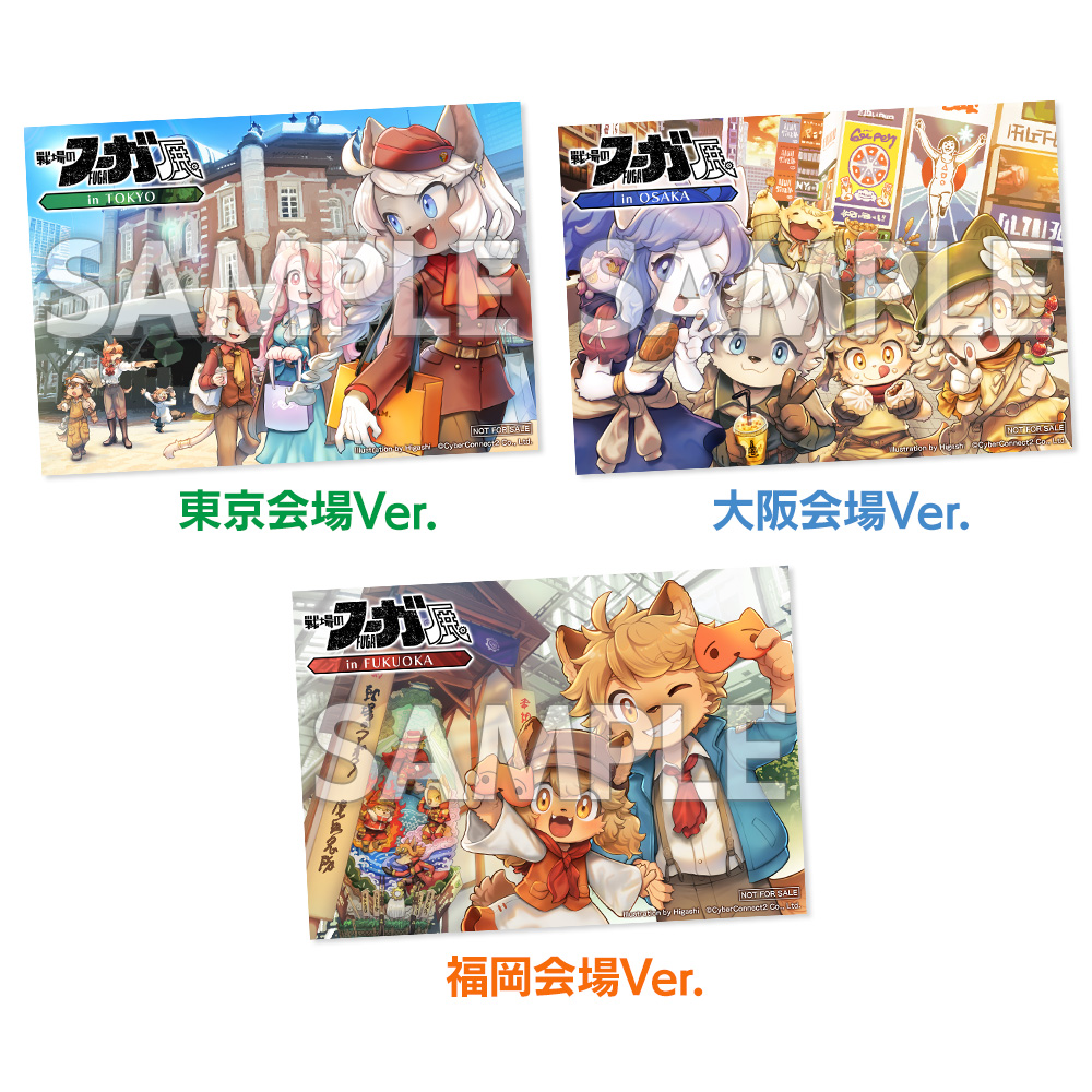 会場にある物販ブースでお買い物をされた方に、イチ会計につき1点、サイバーコネクトツーヒガシの描き下ろしご当地ブロマイドを配布いたします。
