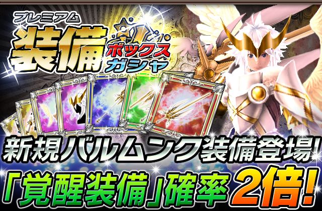 「プレミアム装備ボックスガシャ」は、チケットで引ける「装備ガシャ」の装備も含まれます。