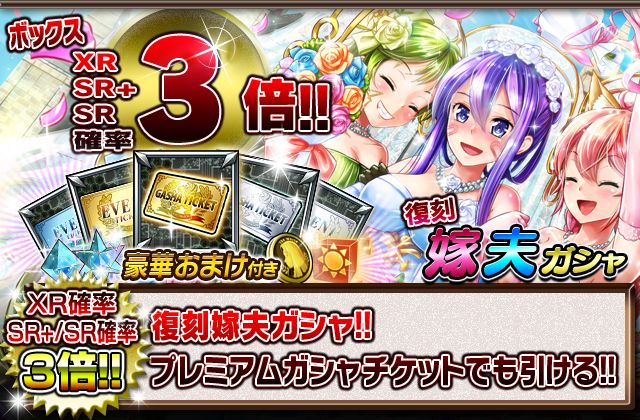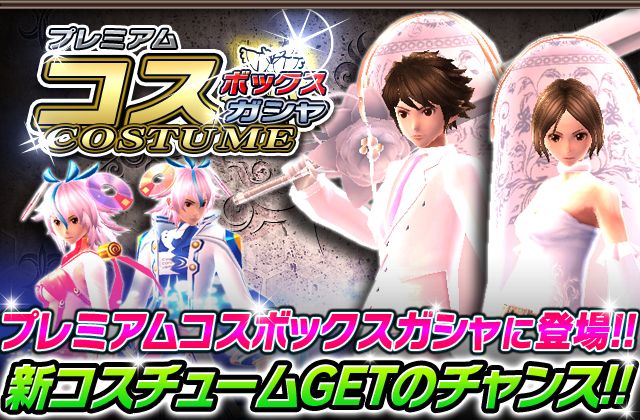 今回の「プレミアムコスボックスガシャ」は、ウェディングに関連したコスチュームと、ワタクシのXthモードの髪型が満を持しての登場デス!!!