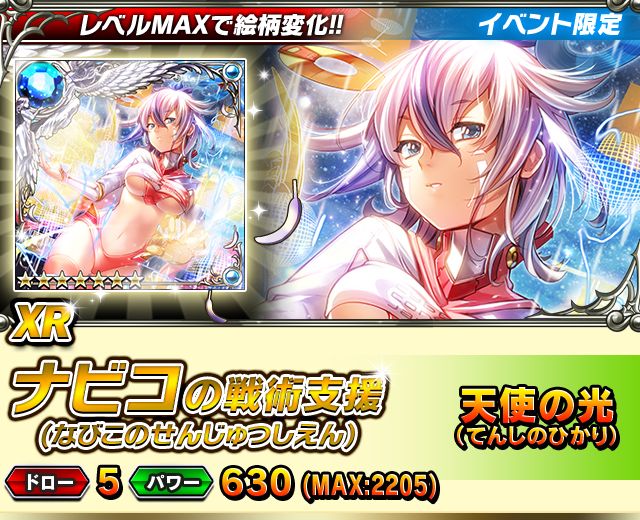 | XR:ナビコの戦術支援×1 / SR+:知られざる一戦×1 / SR:幻影竜の逆鱗×2 / わいるどナビコ×4 / EXPコア【SR+】×1 / 次回イベントガシャチケット金×4 / プレミアムコスガシャチケット×3 / 100,000ゴールド / 弩竜討伐旅団金章 | |||||