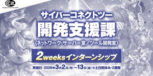 サイバーコネクトツー 開発支援課〈ネットワーク・サーバー室/ツール開発室〉2weeksインターンシップ 応募受付は終了しました。たくさんのご応募をいただき、誠にあり … インターンシップ2025/12/22